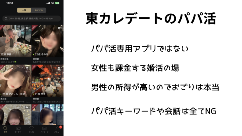 東カレデートでは、パパ活が禁止されています。
